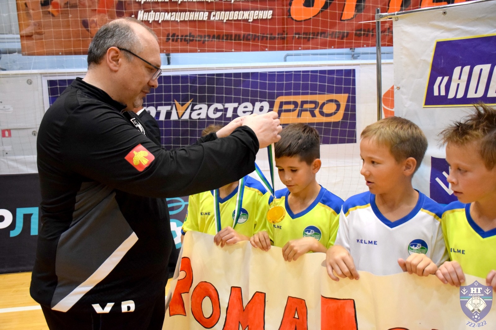 Президент Федерации футбола Республики Коми Юрий Болобонов, тренер ФК «Новая генерации» Виталий Коданев и капитан команды Александр Кригер приняли участие в церемонии награждения всероссийского детского мини-футбольного турнира, посвященного пятилетию Академии мини-футбола «Новая генерация».