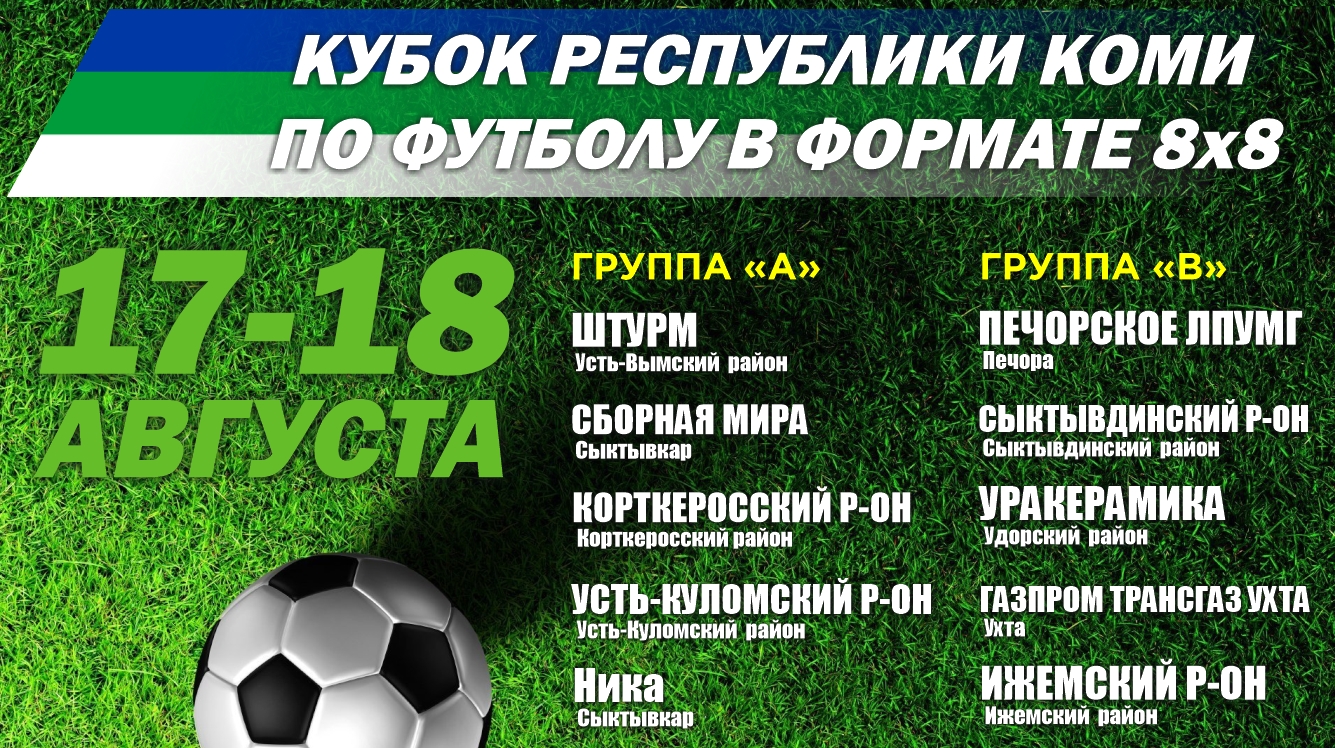 14.08.2024 Жеребьевка Кубка РК по футболу в формате 8х8 В Сыктывкаре состоялась жеребьевка Кубка РК по футболу 8х8, который пройдет на Республиканском стадионе 17-18 августа.