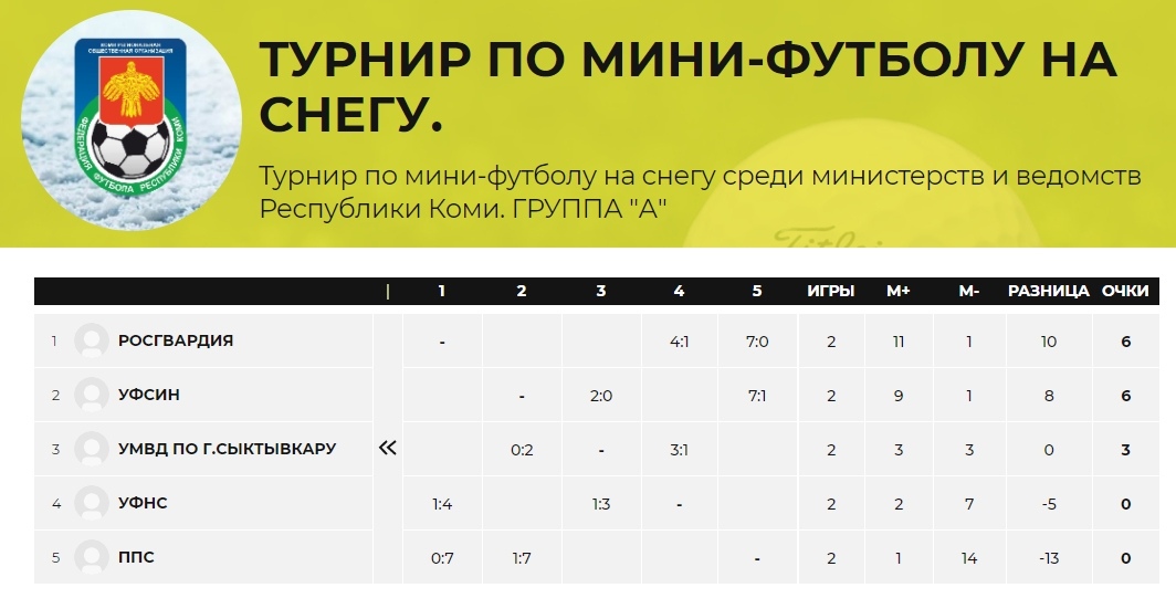 Турнир по мини-футболу на снегу среди министерств и ведомств Республики Коми 2021г.